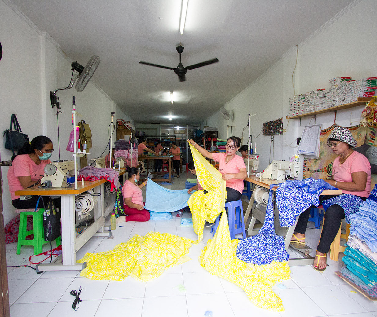 キクロの縫製の全ては、バリ在住の女性たちが担ってくれています。持続的に日本でキクロ製品が流通していくことで、インドネシアの社会課題となる貧困をなくし雇用を守ることができています。